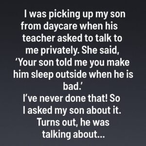 I was picking up my son from daycare when his teacher gently asked if we could talk in private. Her expression was serious, and my heart began…